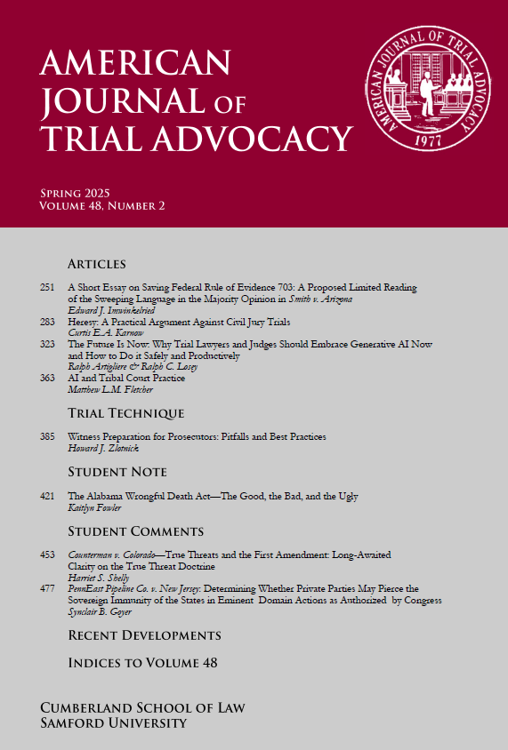 For abstracts and excerpts of upcoming articles, please click the links associated with each title. The full trial techniques and articles are available to read in the 48:1 issue of the American Journal of Trial Advocacy.
